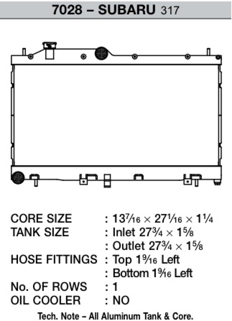 Note: If you have a 7028 and wish to use it on a 2015+ WRX the Turbo Return Pipe on Top Right-Hand Side End Tank must be capped off.