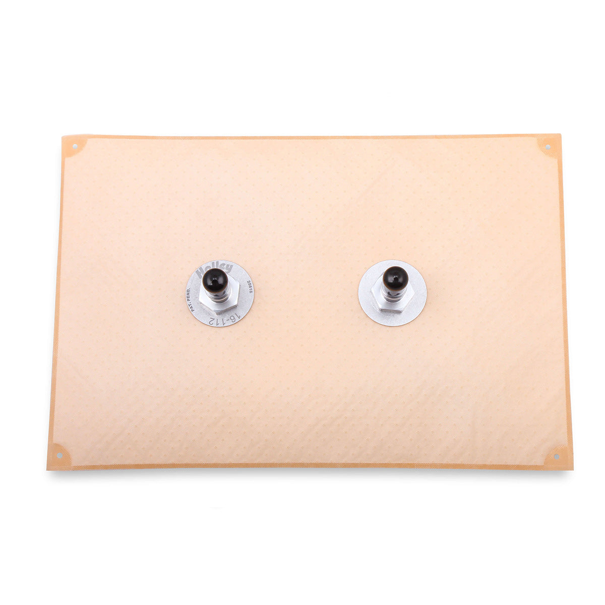The amazing HydraMat® is Holley’s patent pending design that solves the problems associated with traditional fuel pick-ups in stock fuel tanks as well as racing fuel cells. During hard cornering, acceleration, stopping, inclines, and low fuel conditions fuel runs away from the fuel pick up which introduces air into the system resulting in poor engine performance and even stalling. HydraMat is the solution! Surface tension and fluid wicking are the secrets of the HydraMat, giving it the amazing ability to draw from nearly any area that has contact with fuel and then store it in its internal reservoir. As an area of the HydraMat is uncovered, the tiny pores of the media seal off through surface tension, forcing fuel to be contained in the reservoir and drawn from other areas of the mat where fuel continues to be available. The sheer size and coverage area of the HydraMat allows it to pull fuel from virtually any area in the tank or cell eliminating the need for specialty reservoirs and pick up pumps saving cost and greatly reducing complexity. HydraMats are available in various sizes and shapes to fit a variety of stock fuel tanks and/or race fuel cells.