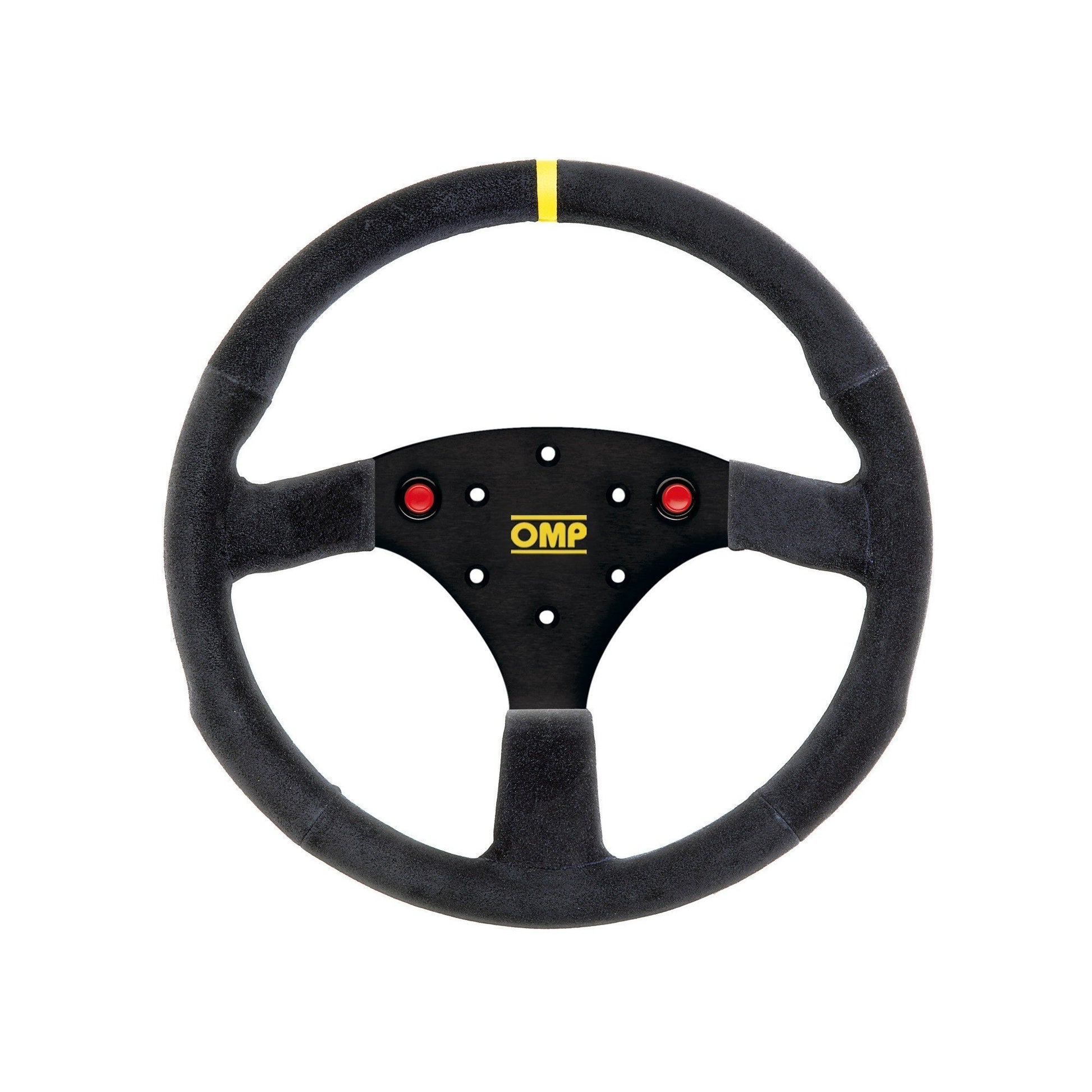 The OMP 320 ALU S is a 320mm diameter flat aluminium steering wheel. Shaped handgrip and spokes improve driving feeling and comfort. It has two red buttons mounted on horizontal spokes controlling two separate accessory switches (for example one for horn and the other for highbeams).