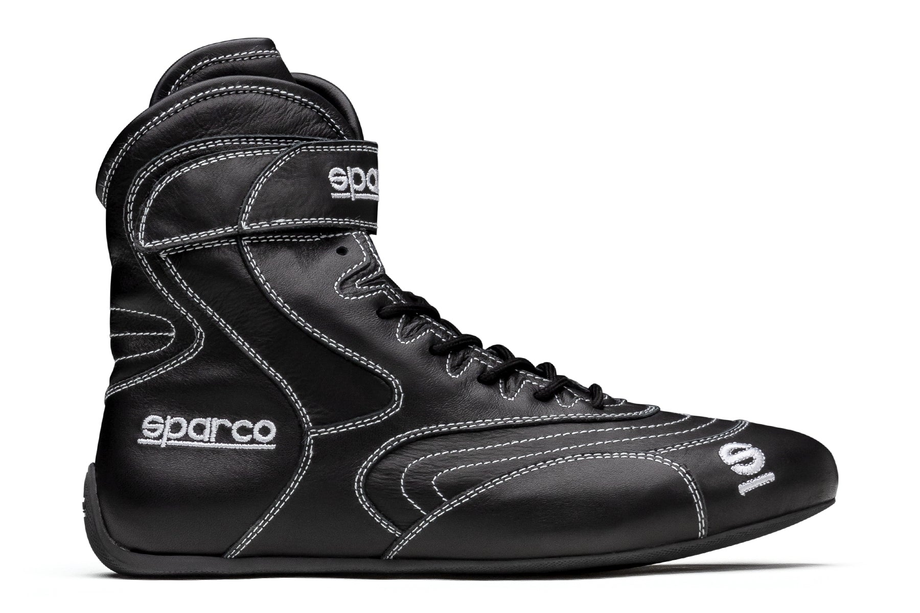 The Sparco SFI 20 is the ultimate drag racing shoe designed to be lightweight, comfortable and have superior fire protection. The SFI 20 is one of the lightest SFI 20 shoes in the world. The SFI 20 is made from high-quality suede and leather with a Velcro strap for greater angle support and hold. The SFI 20 has an ultra-thin, oil resisitant and anti-static sole that offers greater pedal sensitivity. The SFI 20 also has a comfortable Texon inner sole with anti-bacterial treatment. The SFI 20 is available in black, sizes 38-48.