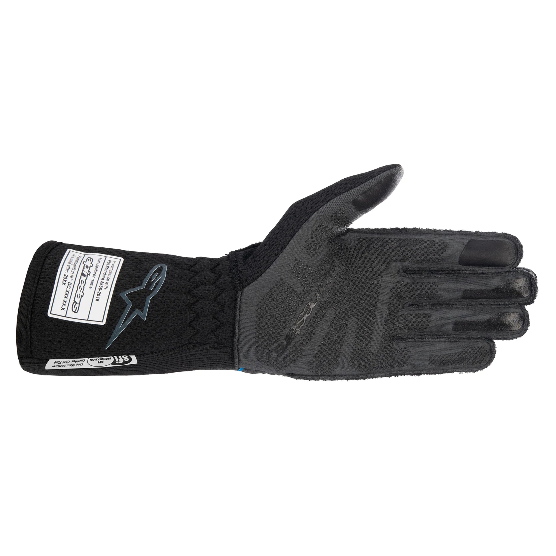 • Touchscreen compatible thumb and second fingertip. • Certified to FIA 8856-2018 homologation standard. • Advanced, breathable, and flame-resistant honeycomb, aramidic fiber main assembly with bonded aramidic lining to ensure for optimal temperature control and maximum comfort and feel.
